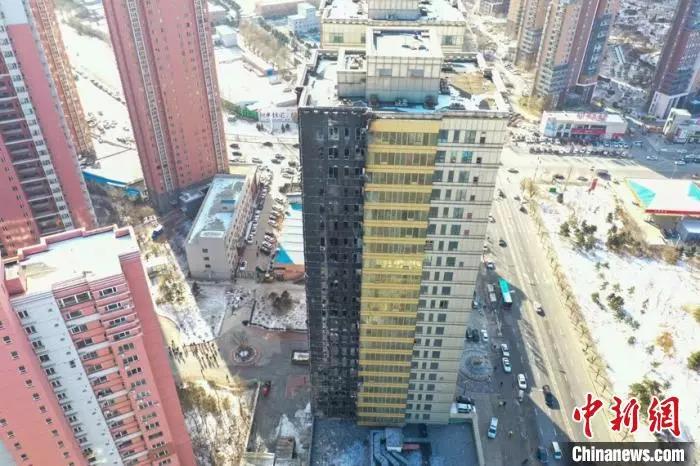 3日,火灾后的102号楼一侧已呈黑色。 于海洋 摄